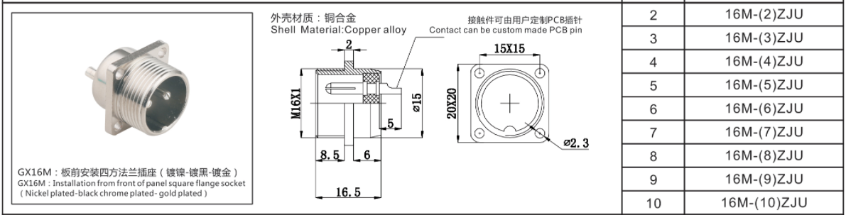 GX16方形